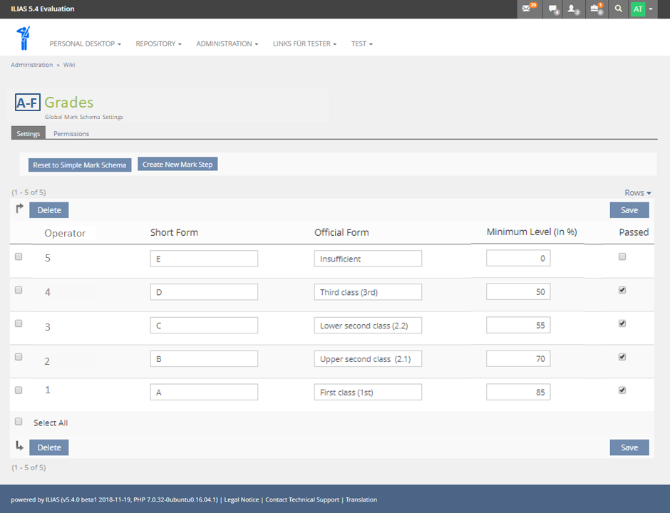 This new node offers an option to configure a global mark scheme: Administrators could devise