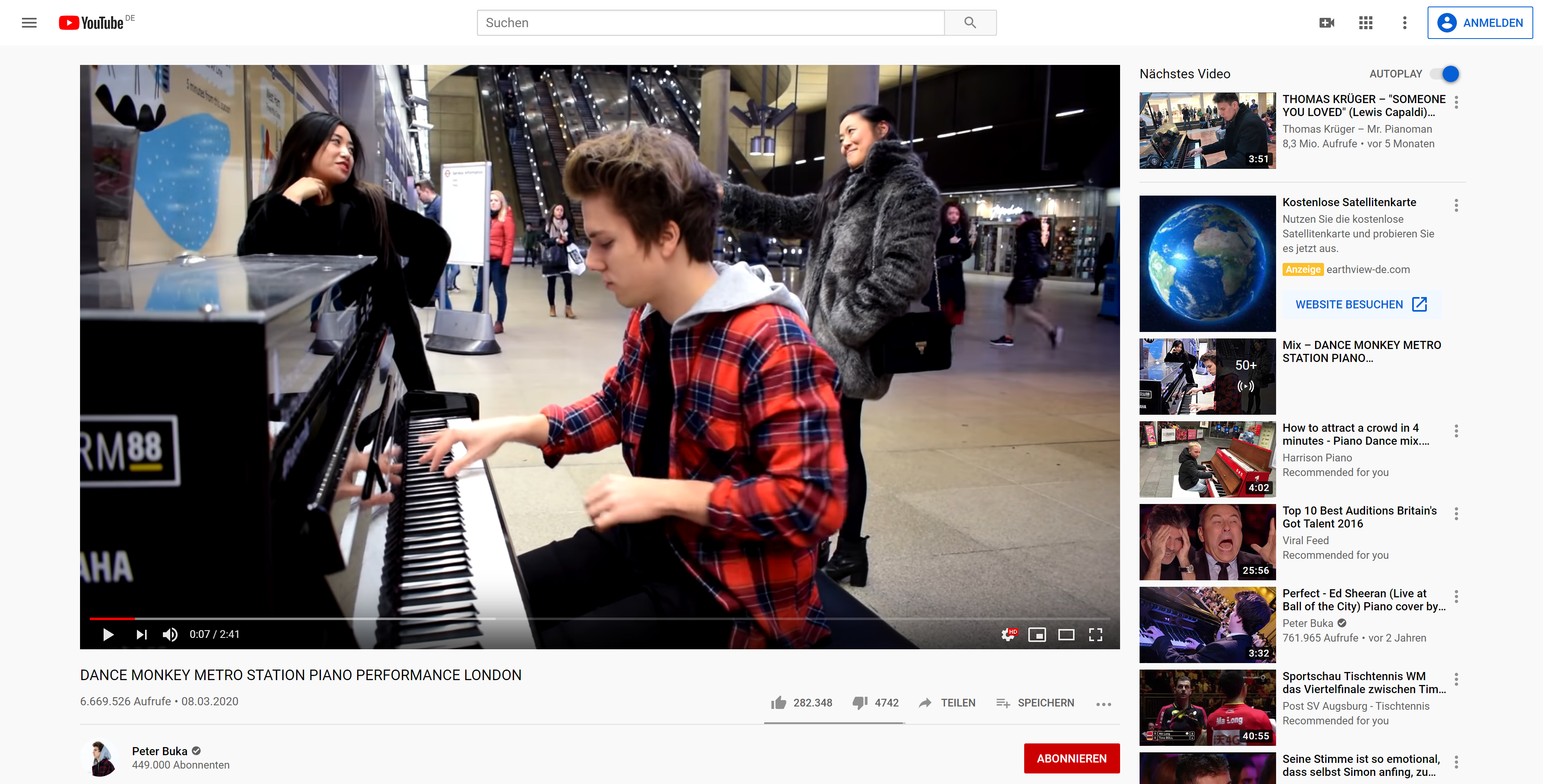 - The current video is displayed with title and description.