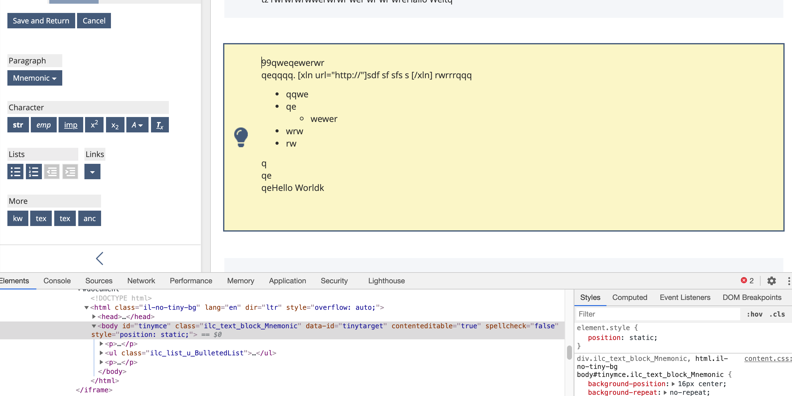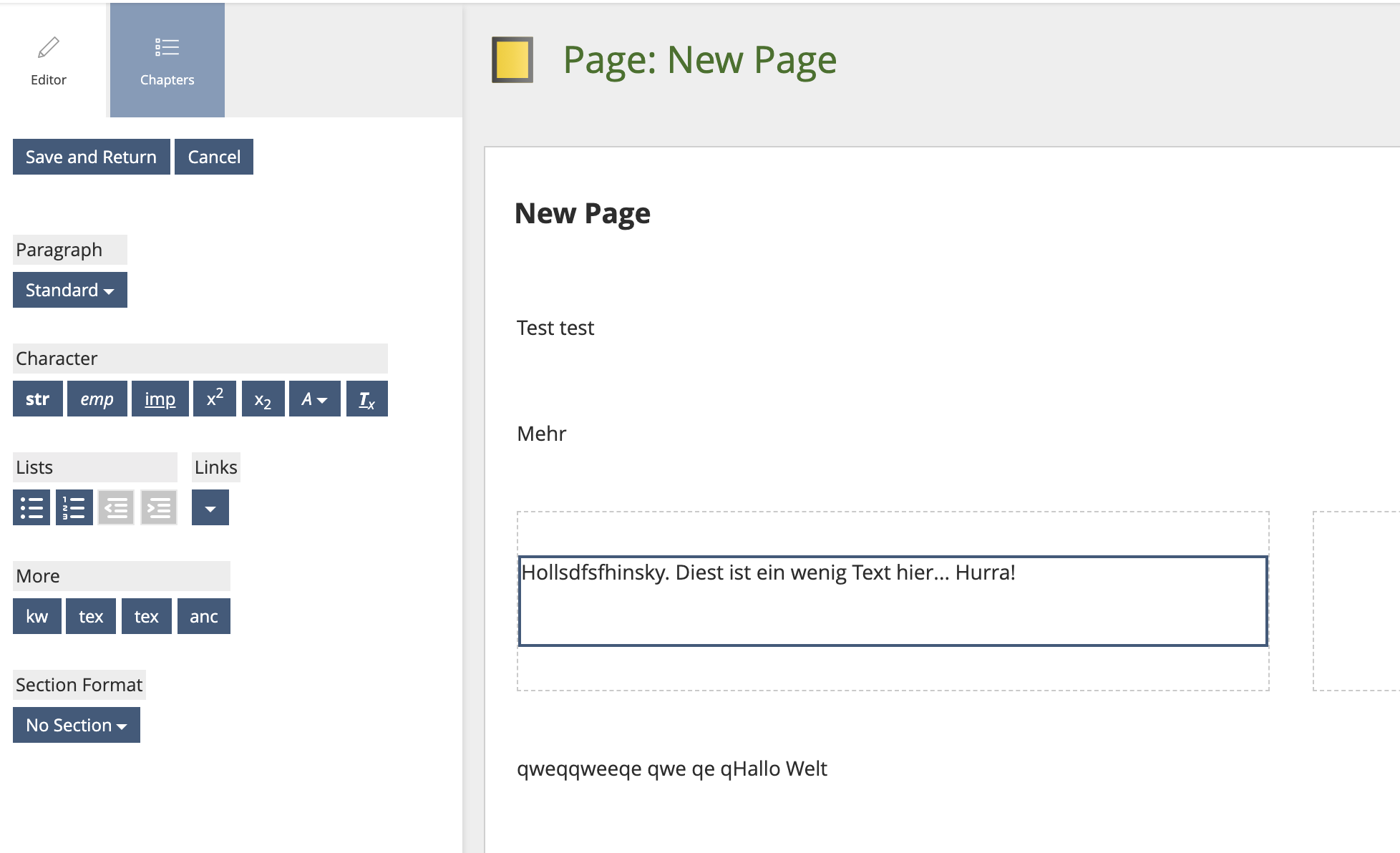<p></p>or</br>). Furthermore, it is open what interpretation the Tiny delivers. It could be delivered as pseudo paragraphs (Shift+Return) or several paragraphs could be generated during the paste process. The given dependency can not be eliminated here! - When creating a new paragraph you can jump to another existing paragraph. This leads to saving the leaved paragraph.(In ILIAS 6 (and earlier) this is not so. This always leads to irritations because you can jump between several existing paragraphs.)